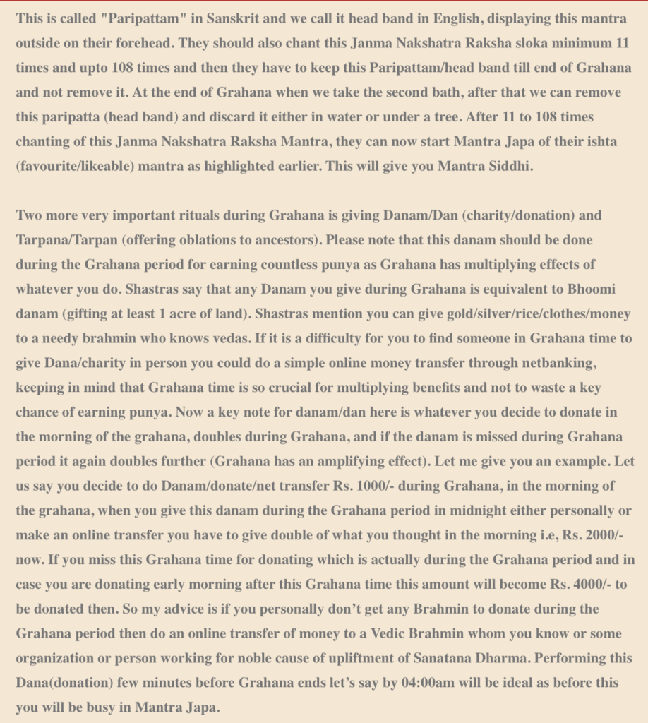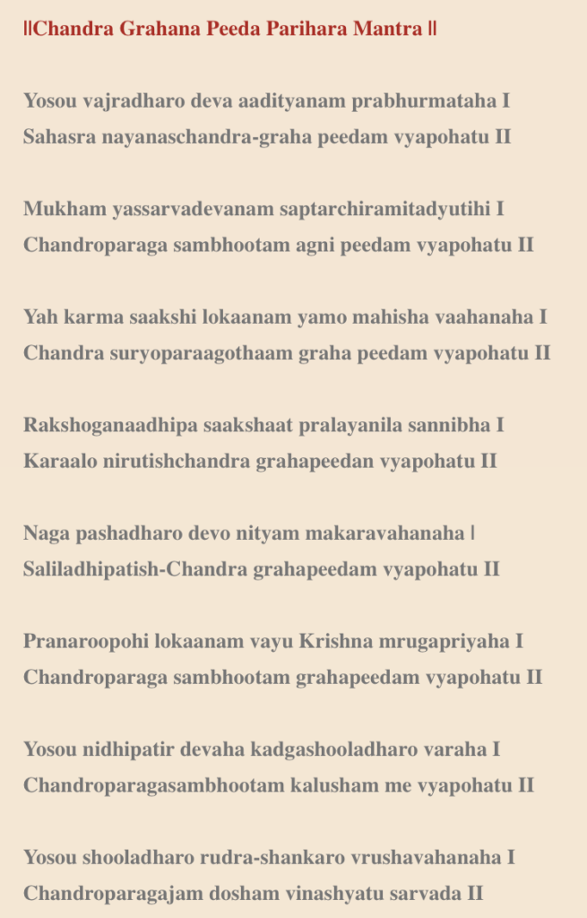Lunar Eclipse / Chandragrahana Procedure