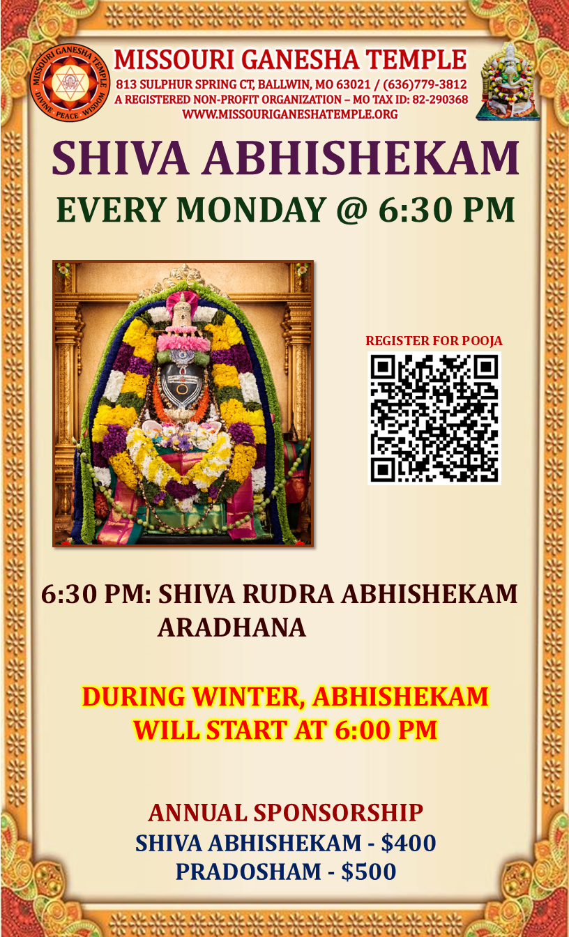 One Week – $25, Annual – $400, Pradosham Annual – $500