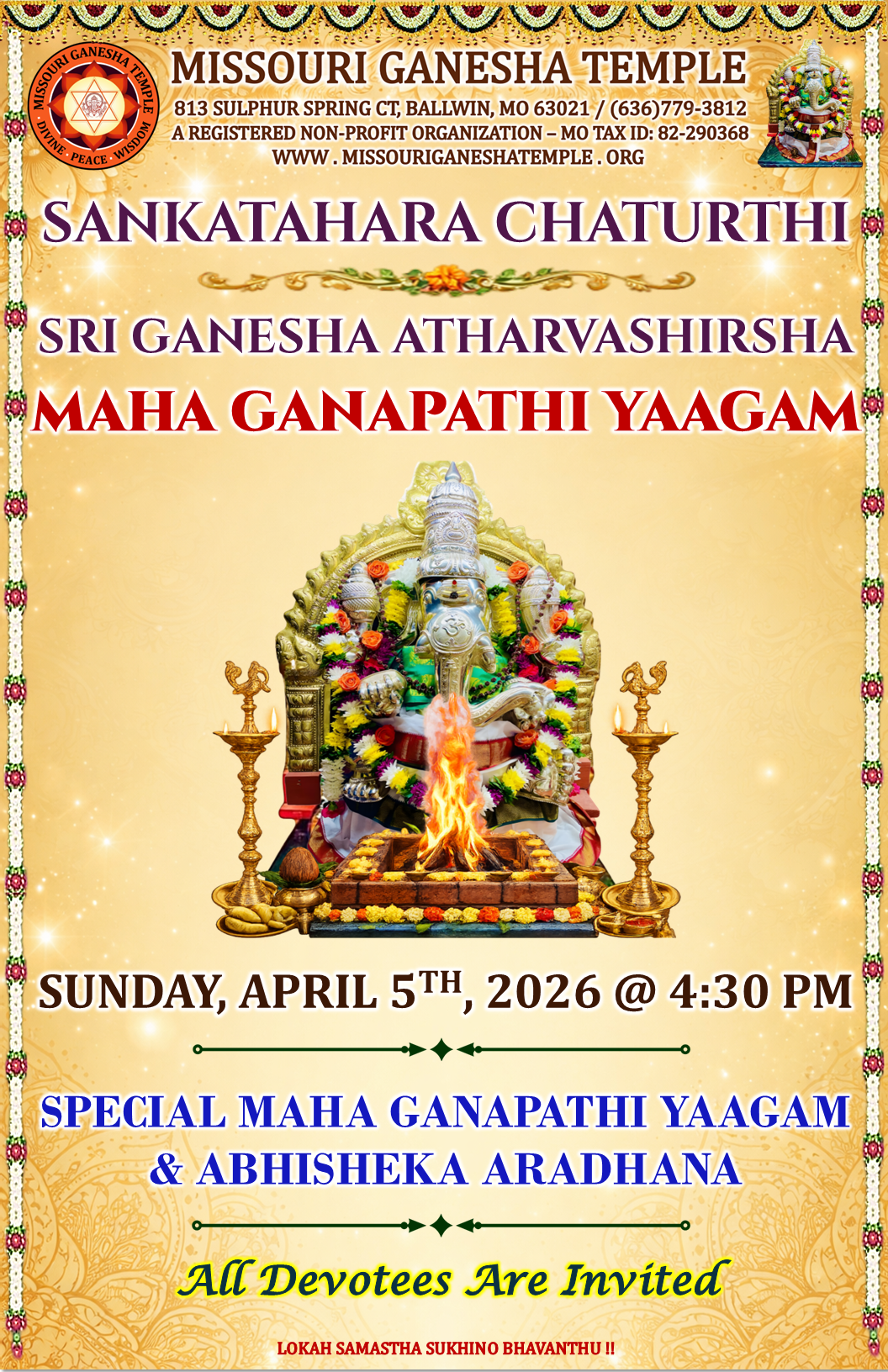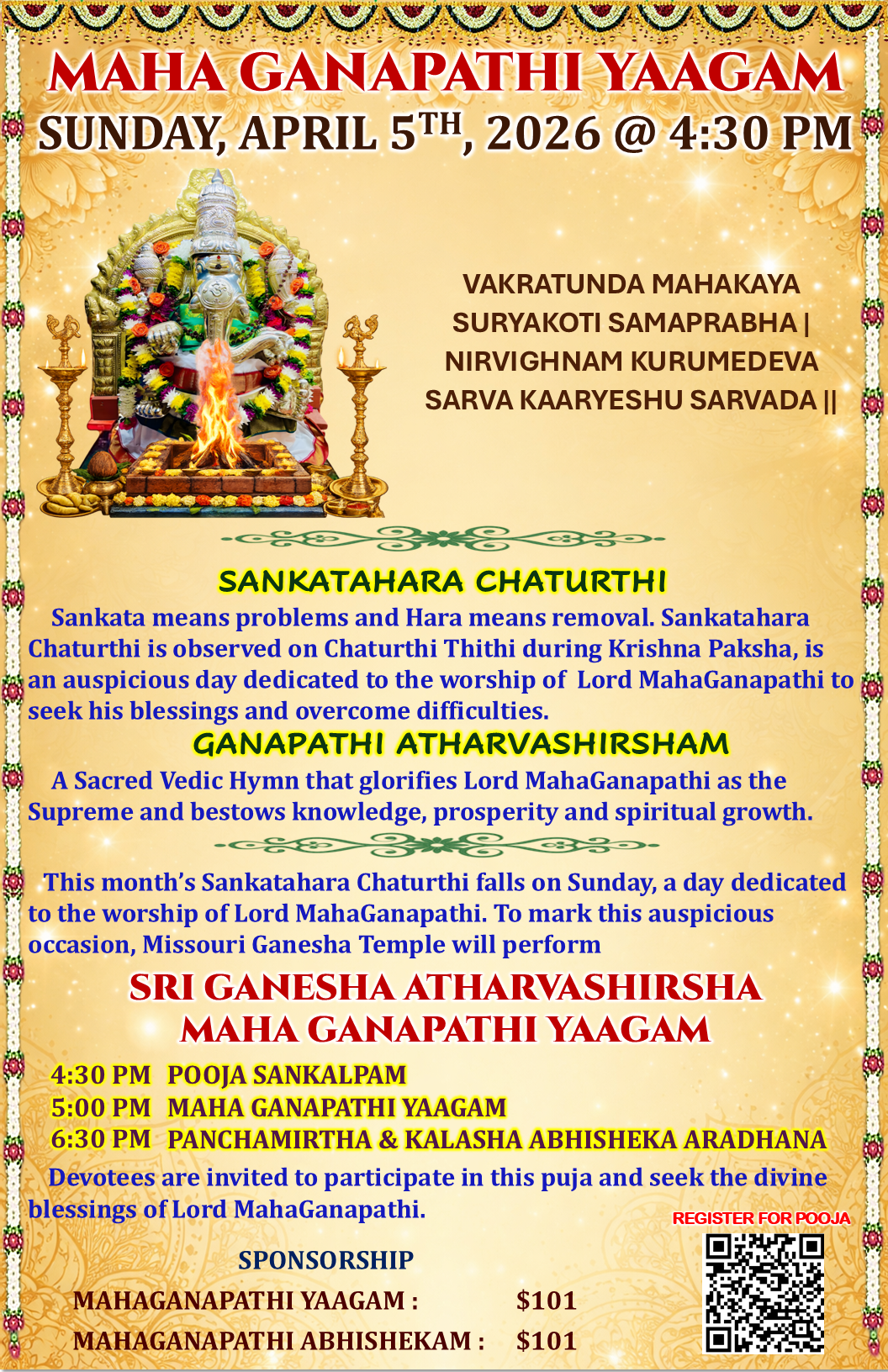 Mahaganapathi Yagam – $101, Mahaganapathi Abhishekam – $101