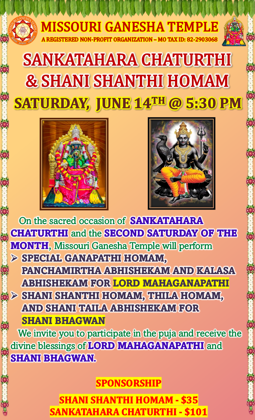 Shani Shanti Homam – $35, Sankatahara Chathurthi – $101