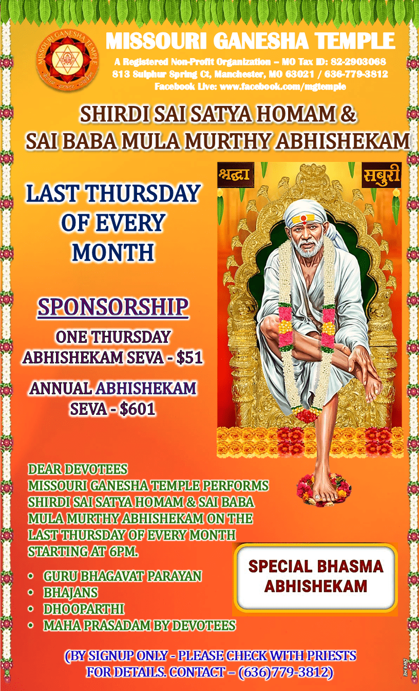 / SHIRDI SAI SATYA HOMAM & SAI BABA MULA MURTHY ABHISHEKAM
