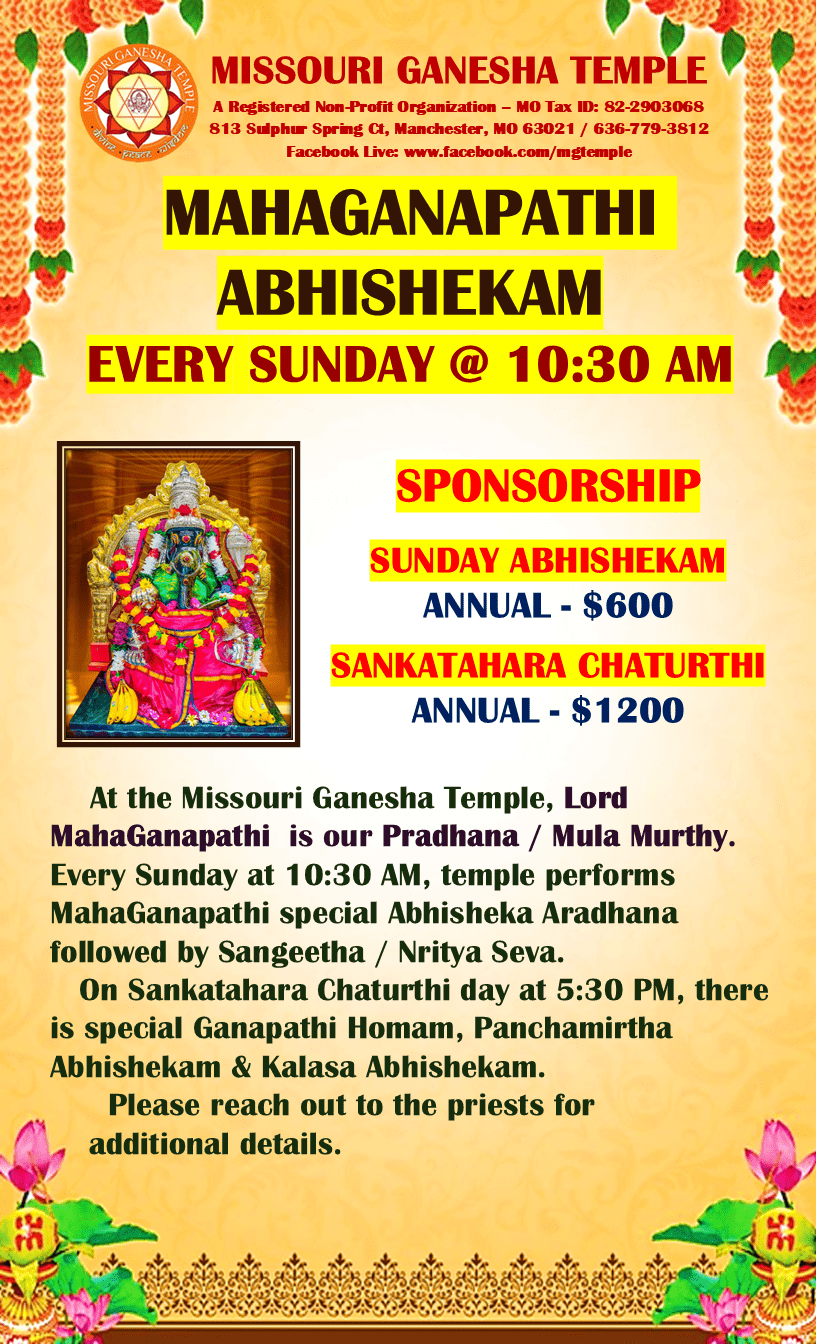 One Week – $101, Annual – $600, Annual – Sankarahara Chathurthi – $1200