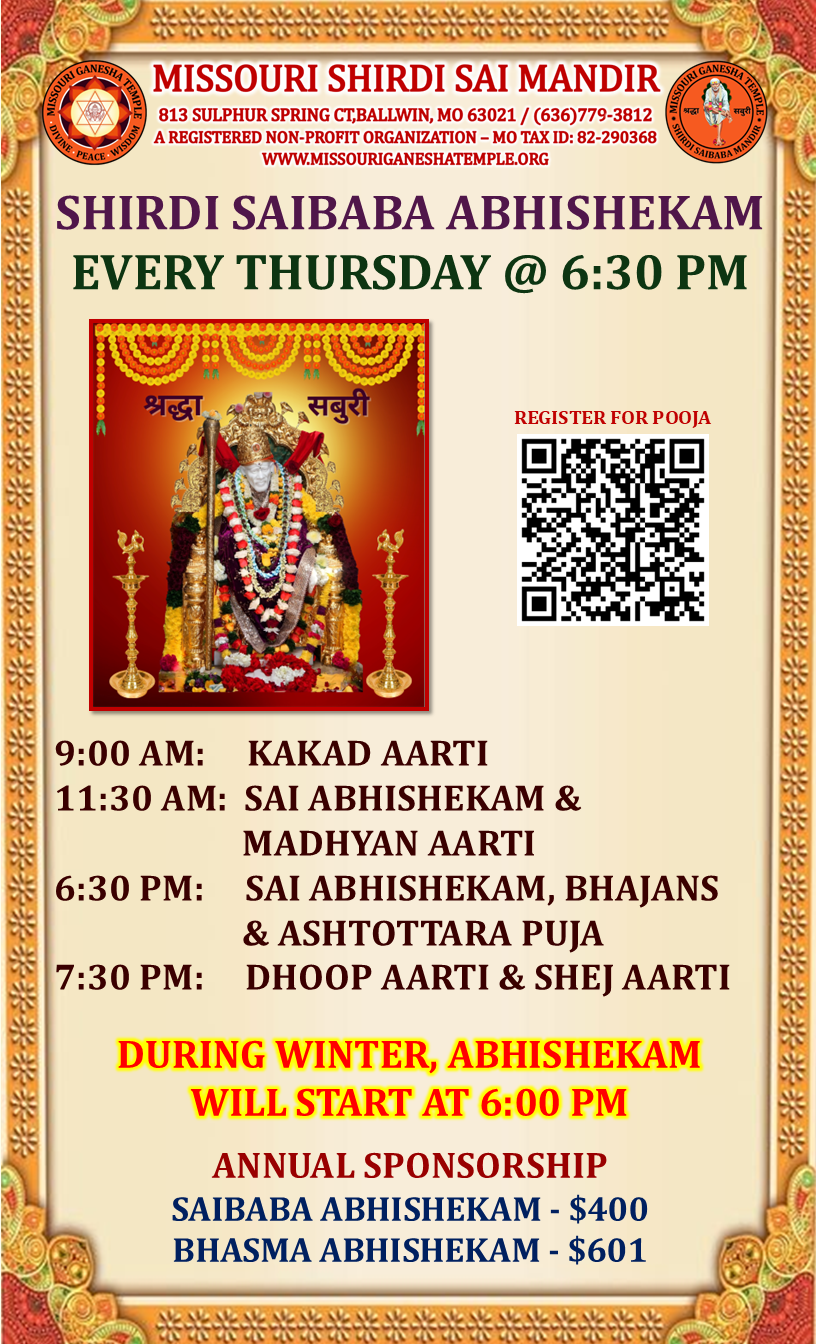 One Week – $51, Annual – $400, Annual Bhasma Abhishekam – $601
