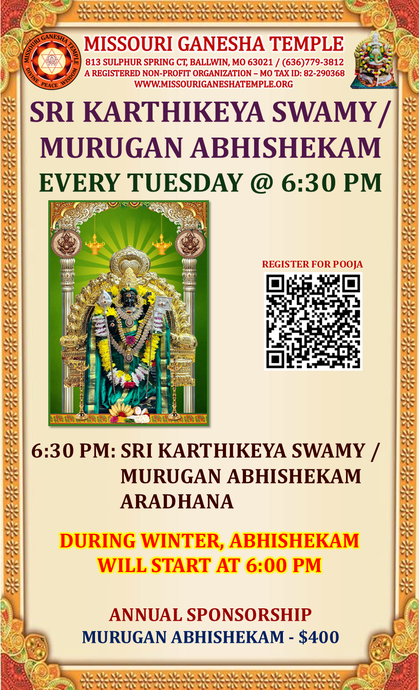 / Tuesday – Murugan Abhishekam